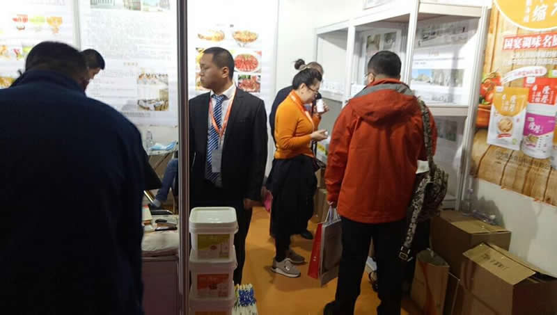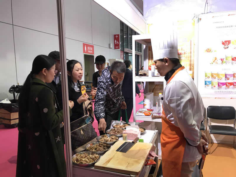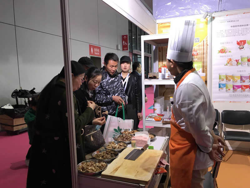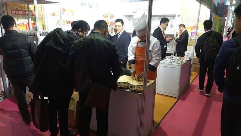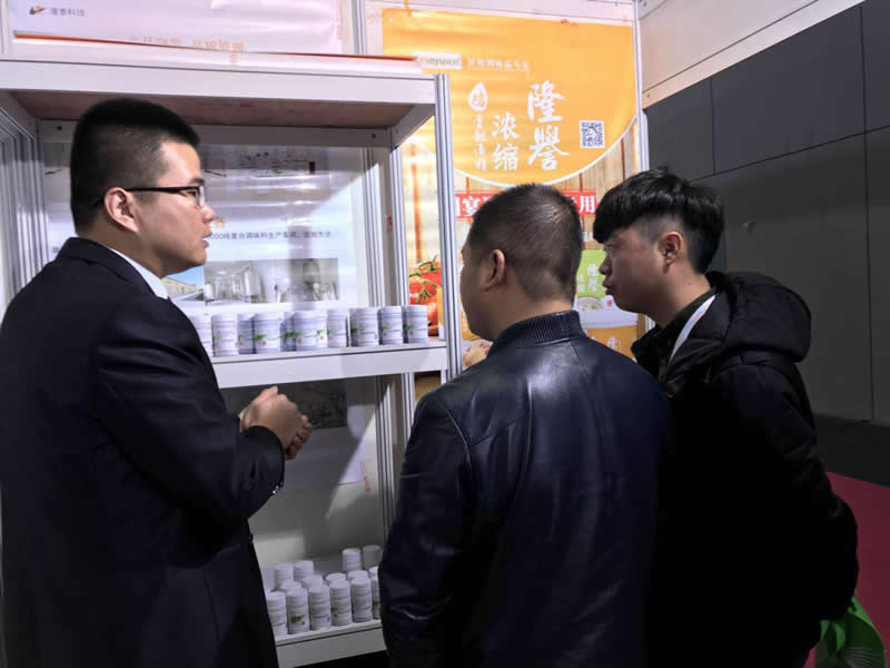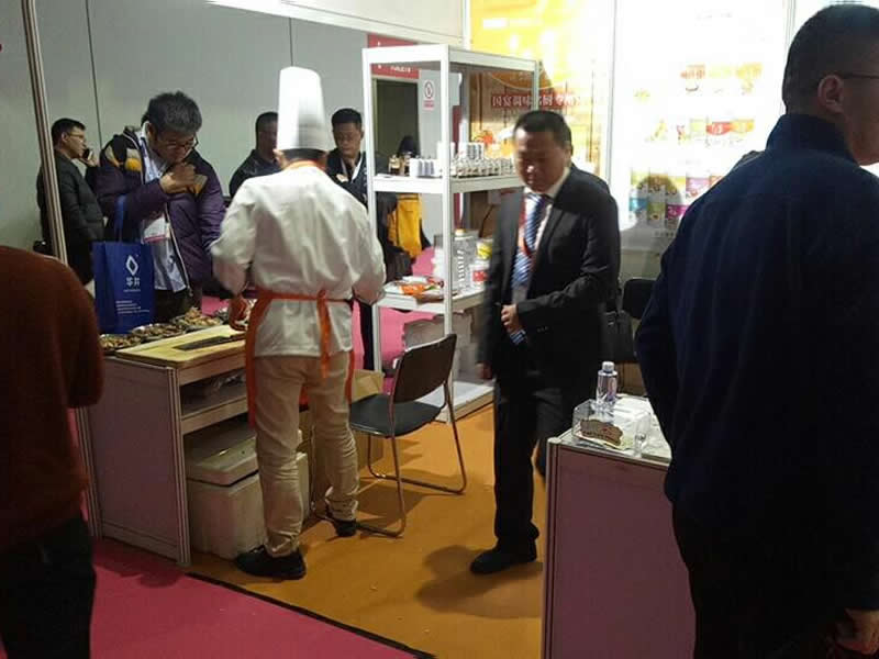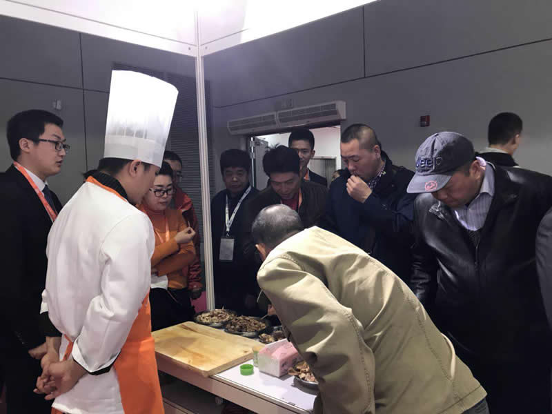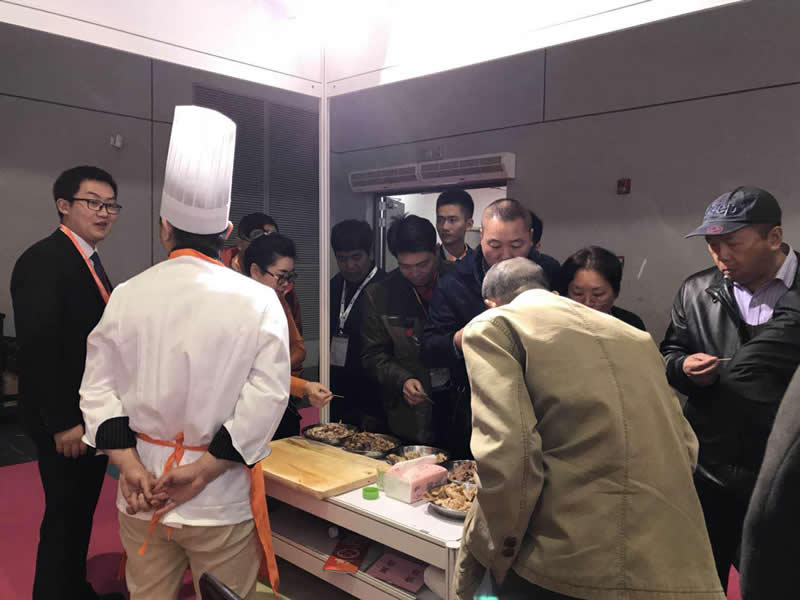 前來參觀的客戶正在試吃用”隆泰“香精系列制作的鹵制品,都贊不絕口!
