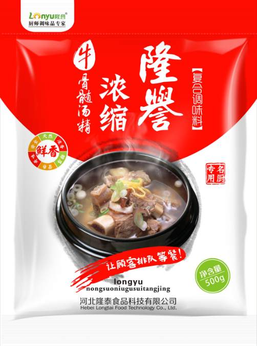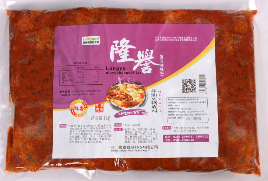 3、起鍋燒油,下入蒜片姜片炒香,下入30克郫縣豆瓣醬炒出紅油,下入隆譽牛油火鍋底料50克炒香加水燒開,下入主料,放5克鹽,10克白糖,10克隆譽牛骨髓湯精,5克隆譽一統(tǒng)麻辣調味,倒入盆內。