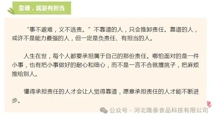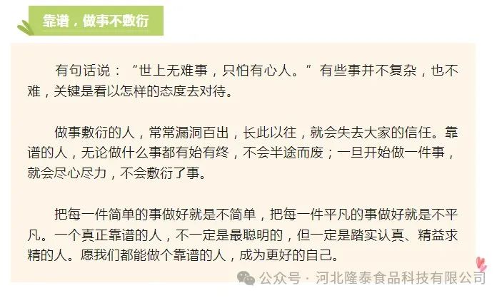 企業(yè)亦是如此,隆泰公司始終如一的秉持“誠信、敬業(yè)、創(chuàng)新,發(fā)展”的經(jīng)營理念,致力于食品風(fēng)味、滋味研究,以高度的專業(yè)化、職業(yè)化為顧客提供增值服務(wù)。堅(jiān)持“視產(chǎn)品質(zhì)量為企業(yè)的生命,欺騙顧客等于欺騙自己”的質(zhì)量理念,成為了國內(nèi)咸味食品香精、符合調(diào)味品行業(yè)的知名企業(yè)。