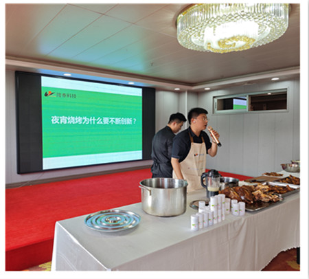 公司應用技術工程師現(xiàn)場制作了鹵味食品以及燒烤制品,供前來參會交流精英們品嘗、點評。